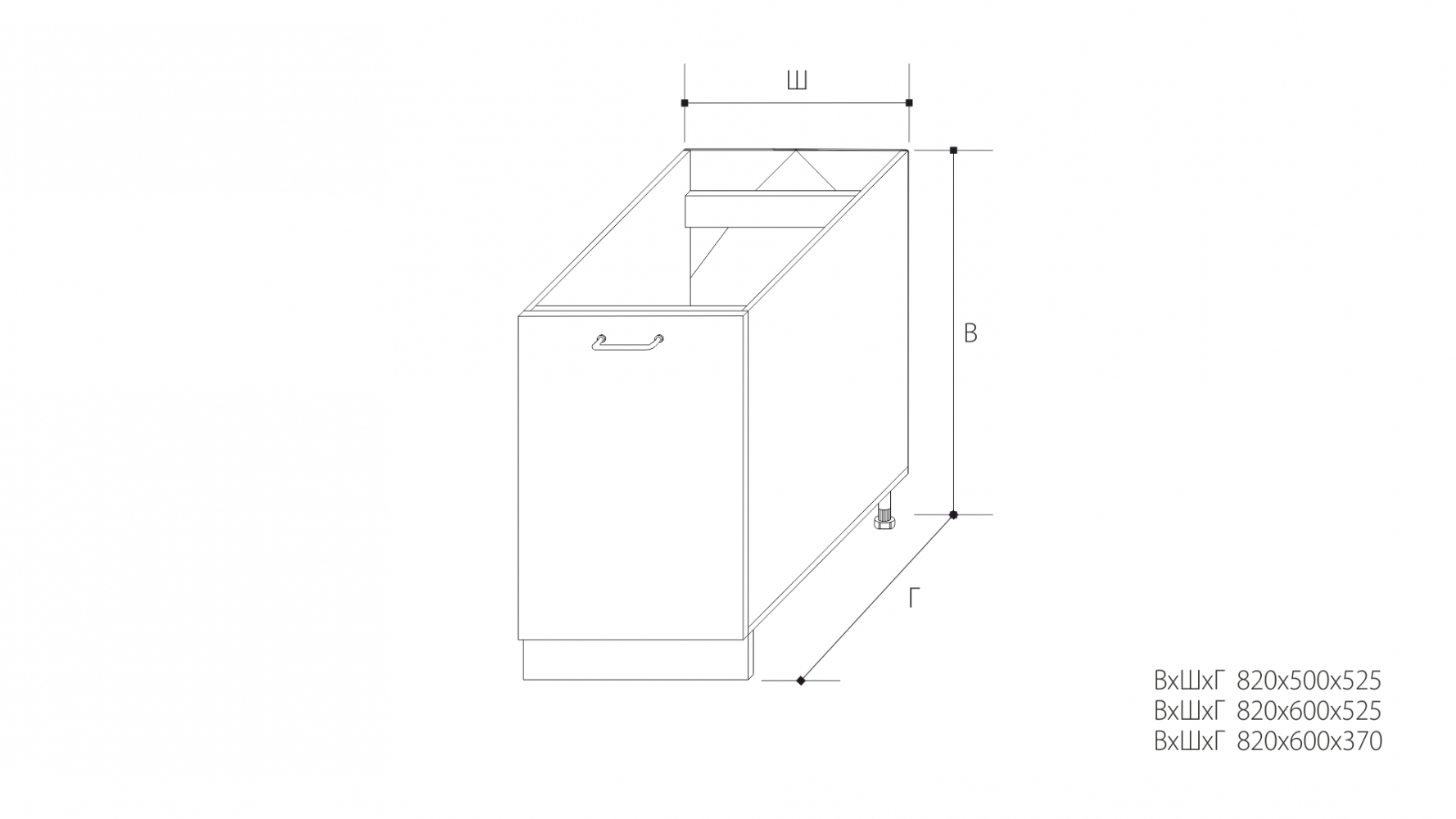 ВхШхГ: 820х500х525 мм.